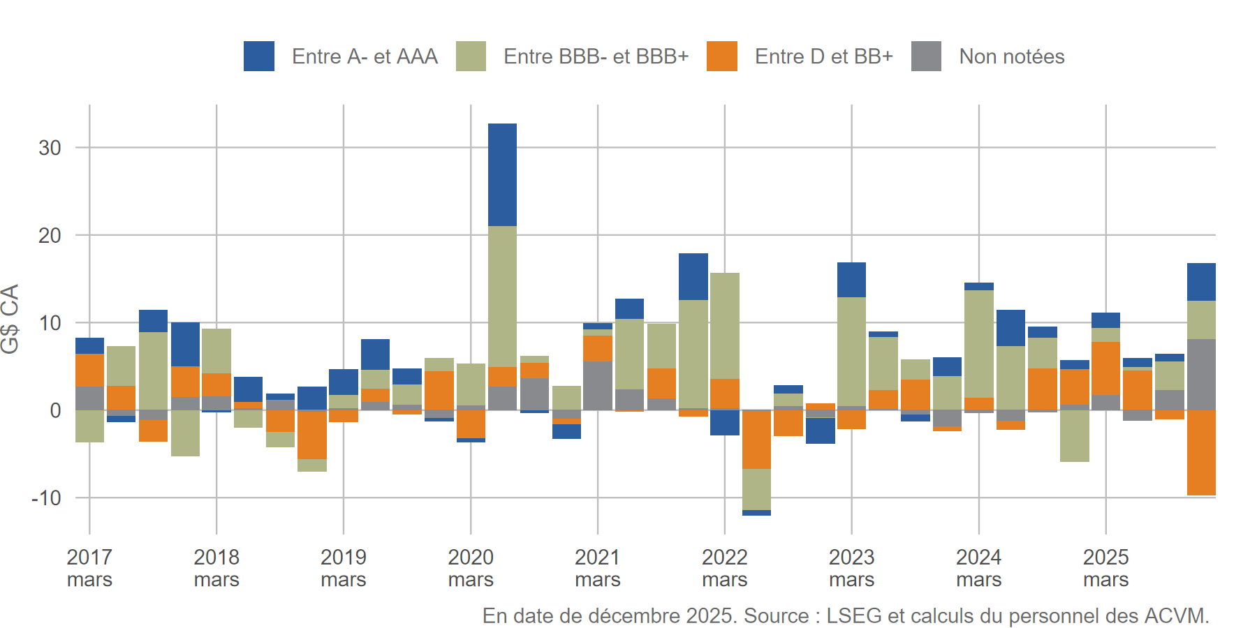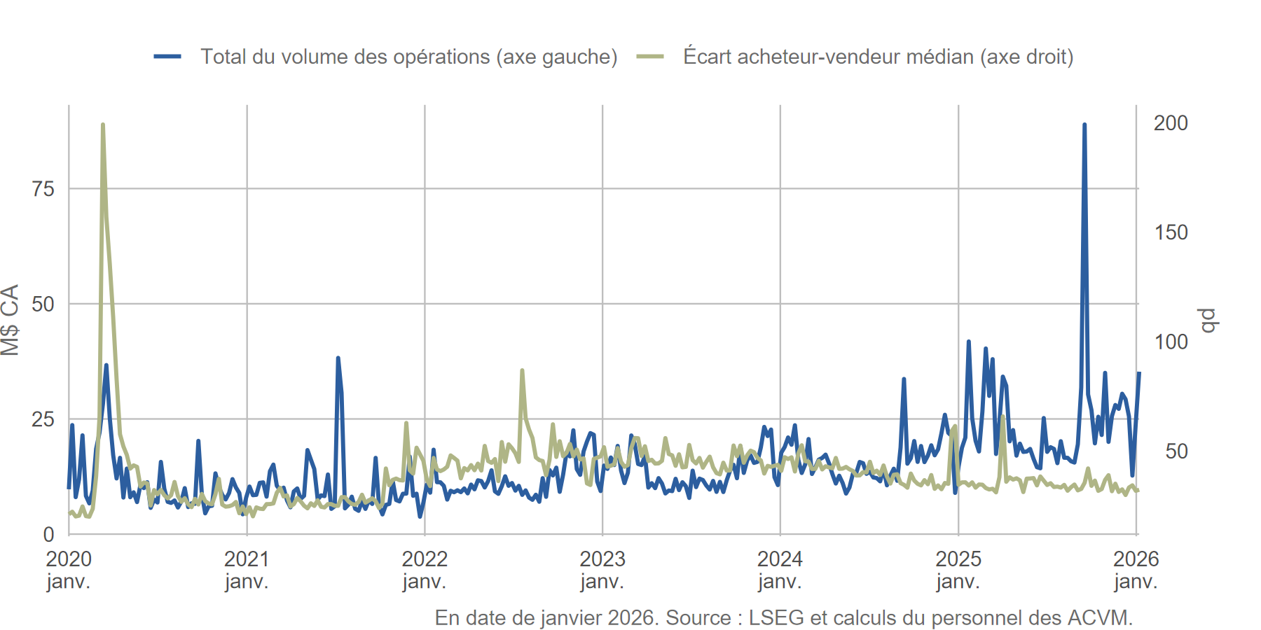 [12] Les données canadiennes proviennent du LSEG et des calculs effectués par le personnel de la CVMO.